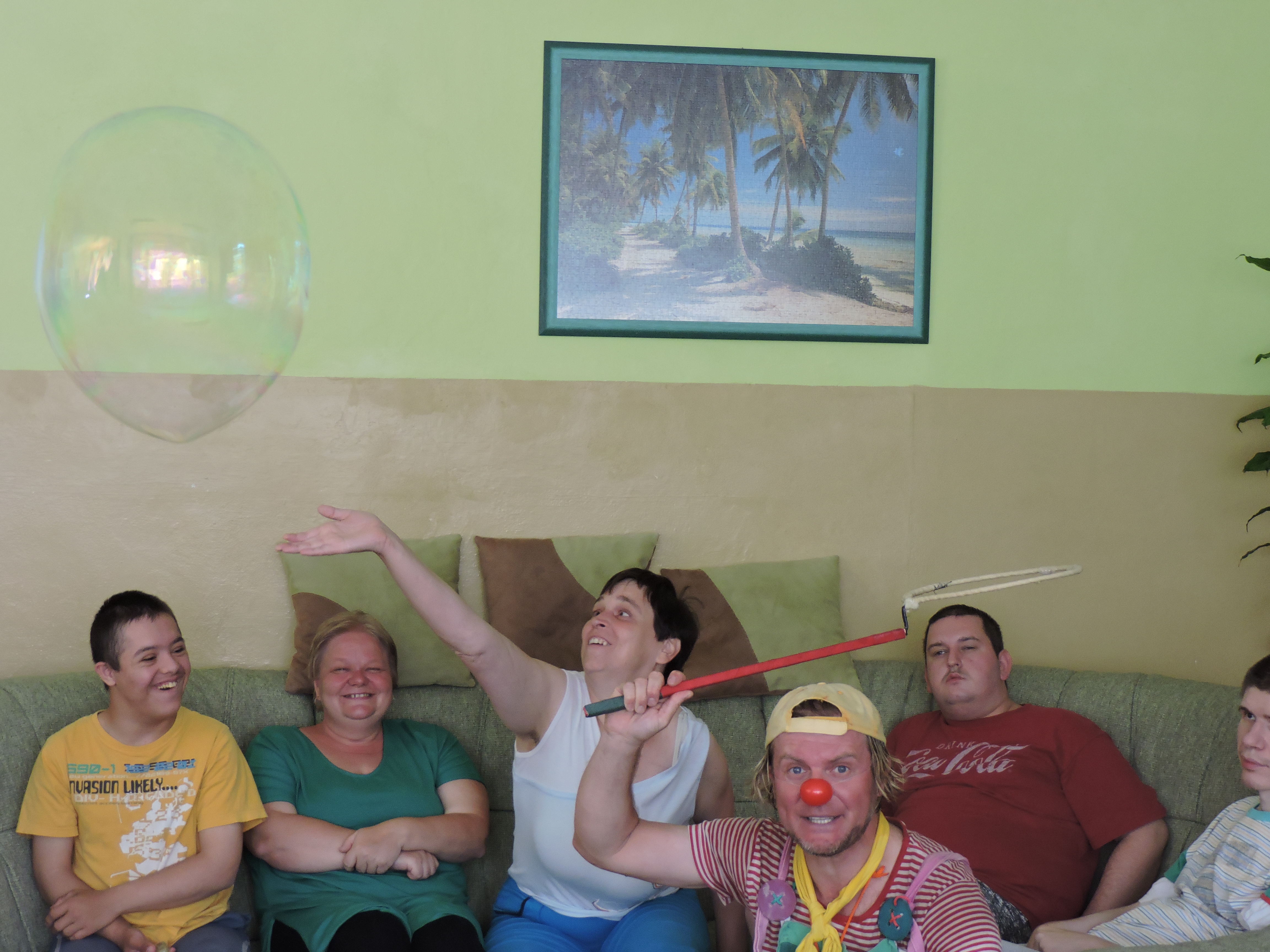 Zavítal k nám klaun Adrián, ktorý nás potešil svojou návštevou. Dozvedel sa, že naši kamaráti Riško, Lucka a Janka oslavujú narodeniny. Veľmi ho to potešilo, pretože mal pripravené bublinové prekvapenie. Okrem iného prišiel aj so svojím pracovným pomocníkom, aby nám upratal a popritom vykúzlil nádherné bubliny. Jeho prítomnosť nás všetkých veľmi potešila a vyčarila nám široký a radostný úsmev na našich tvárach. Bola to veľmi veselá, potešujúca a pre oslávencov radostná návšteva. Ďakujeme Klaun Adrián a tešíme sa na najbližšie stretnutie s Tebou. J