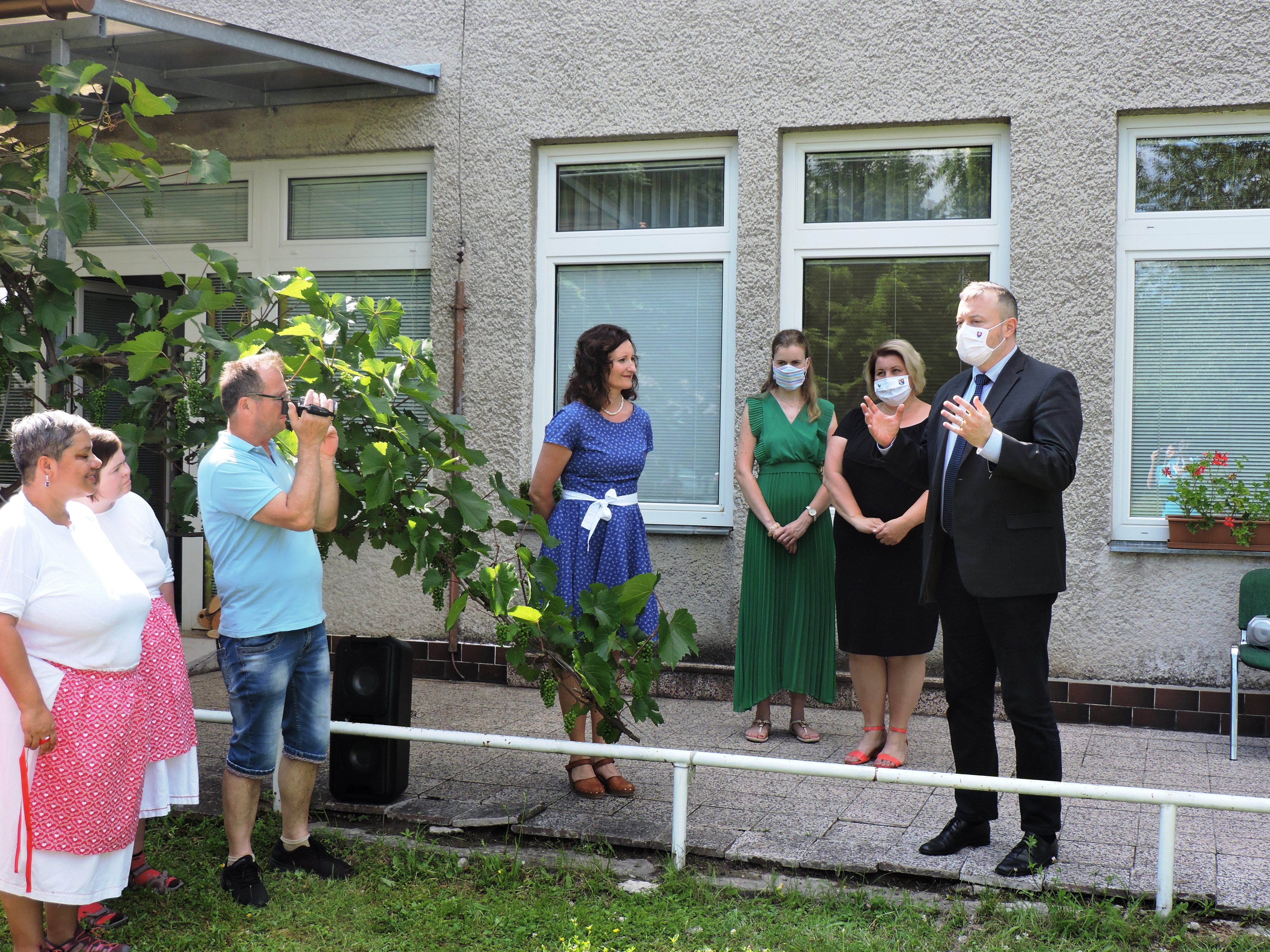 Bolo nám cťou a potešením, že 2.7.2020 medzi nás zavítal – samozrejme pri dodržaní všetkých bezpečnostných hygienických opatrení ☺ – osobne pán minister práce, sociálnych vecí a rodiny SR pán Krajniak. Pripravili sme sa na toto stretnutie krátkym ľudovým tančekom a opekačkou. ☼ Pán minister osobne poďakoval všetkým naším zamestnancom, „ za mimoriadne pracovné nasadenie v prvej línii pri pomoci ľuďom, ktorých zdravie a život ohrozovala pandémia vírusu Covid-19 v najväčšej miere“. Spolu s klientmi si zaspieval a do tanca zatlieskal naším mladým a povozil sa s nimi aj na kolotoči. ☺ Bolo to veľmi milé a príjemné stretnutie, ktoré v nás zanechalo kopec príjemných zážitkov. ♥