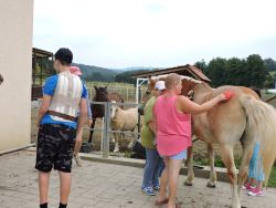 Aj toto leto bolo plné aktivít, ktoré sme si mohli vychutnať. Boli sme v Bojniciach, kde sme sa poprechádzali a obdivovali vynovené prostredie a jazierka. Načerpali sme energiu z prírody v Lesoparku a na Púšti, kde sme si nazbierali aj lesné plody. Boli sme pozrieť aj našu Moniku, ktorá nás pozvala k nim na kávičku a koláčik, ktorý nám upiekla jej mamina a starká. Chodili sme na hipoterapiu – kde sme v rámci ergoterapie pomáhali našej kamarátke Dadke, ktorá sa stará o koníkov. Dadka nám zase porozprávala čo-to zaujímavé o koníkoch a dokonca nám spolu so svojimi dievčatami z jazdeckého krúžku predviedli krátke predstavenie: Štvorylku na koníkoch. Bol nás navštíviť aj psík pani riaditeľky Nydasko, ktorý sa s nami skamarátil a ukázal nám aký je šikovný.